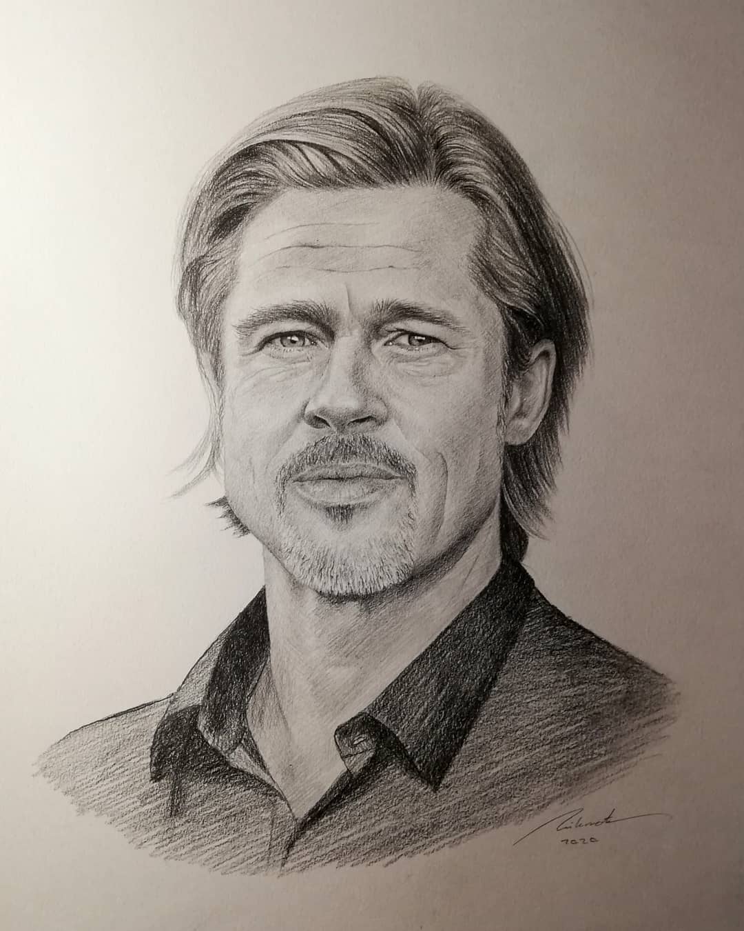 Today, I did a drawing exercise, which is a fun and creative activity for me. The subject this time was the world famous actor Brad Pitt. Drawing Brad Pitt, an actor I admire, was a great opportunity to develop my talent and show my admiration for him.