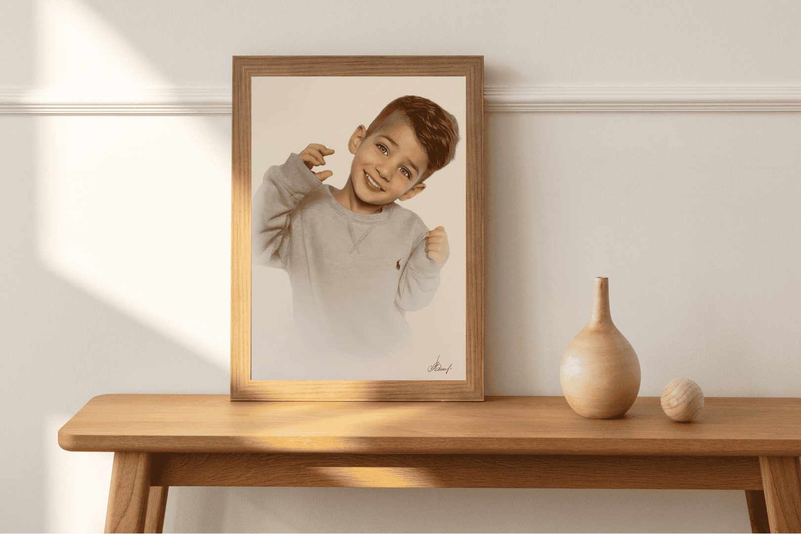 As I carefully defined the facial features, I took care to accurately capture the eyes and his smile. As the drawing progressed, I was happy to see that it reflected Brad Pitt’s characteristic features. Complementing the color and getting the gradations right helped to give it a realistic feel.